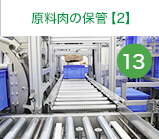 保管庫内で、コンテナに入った原料肉を、専用の段積み機で段積みしていきます。